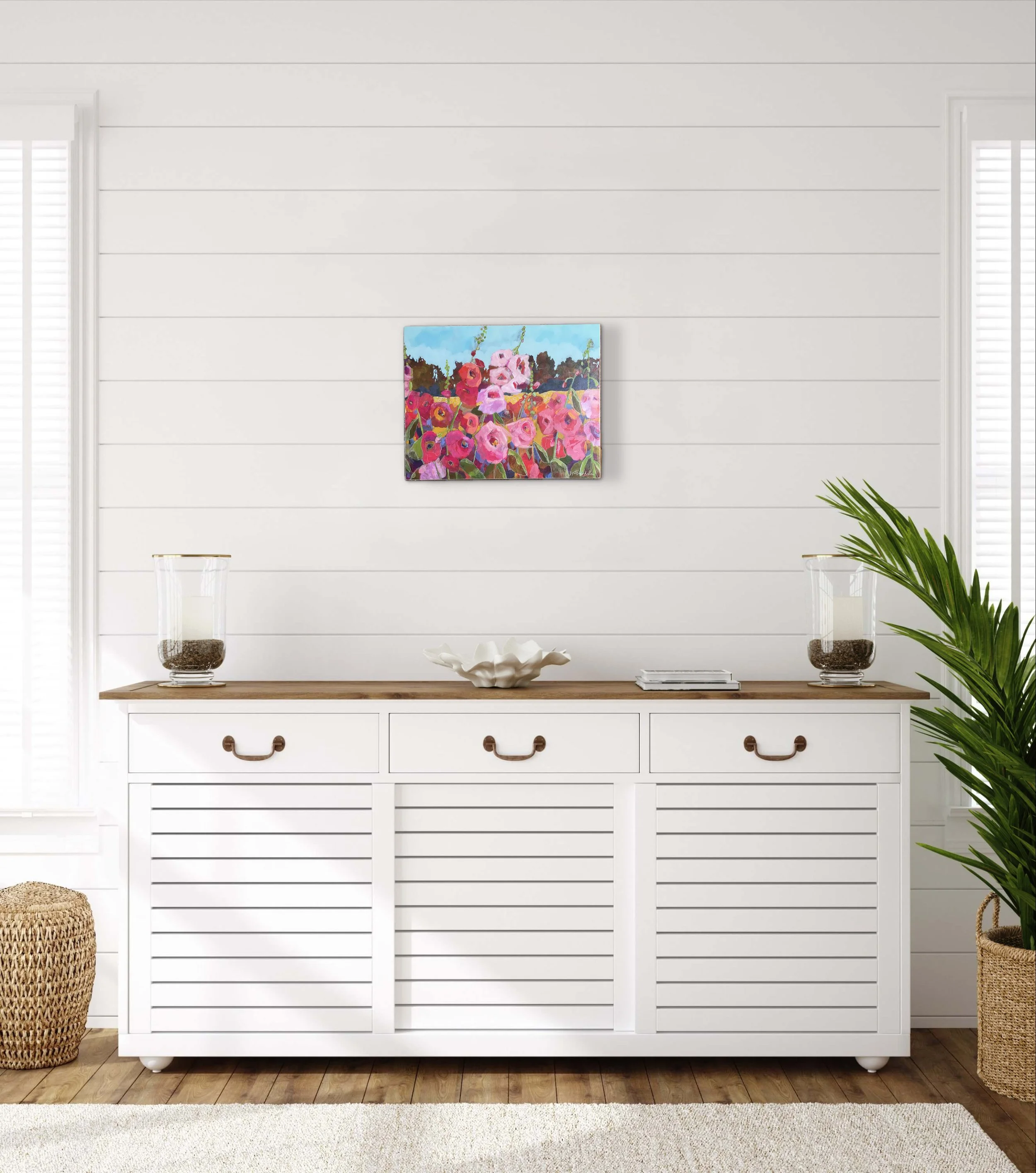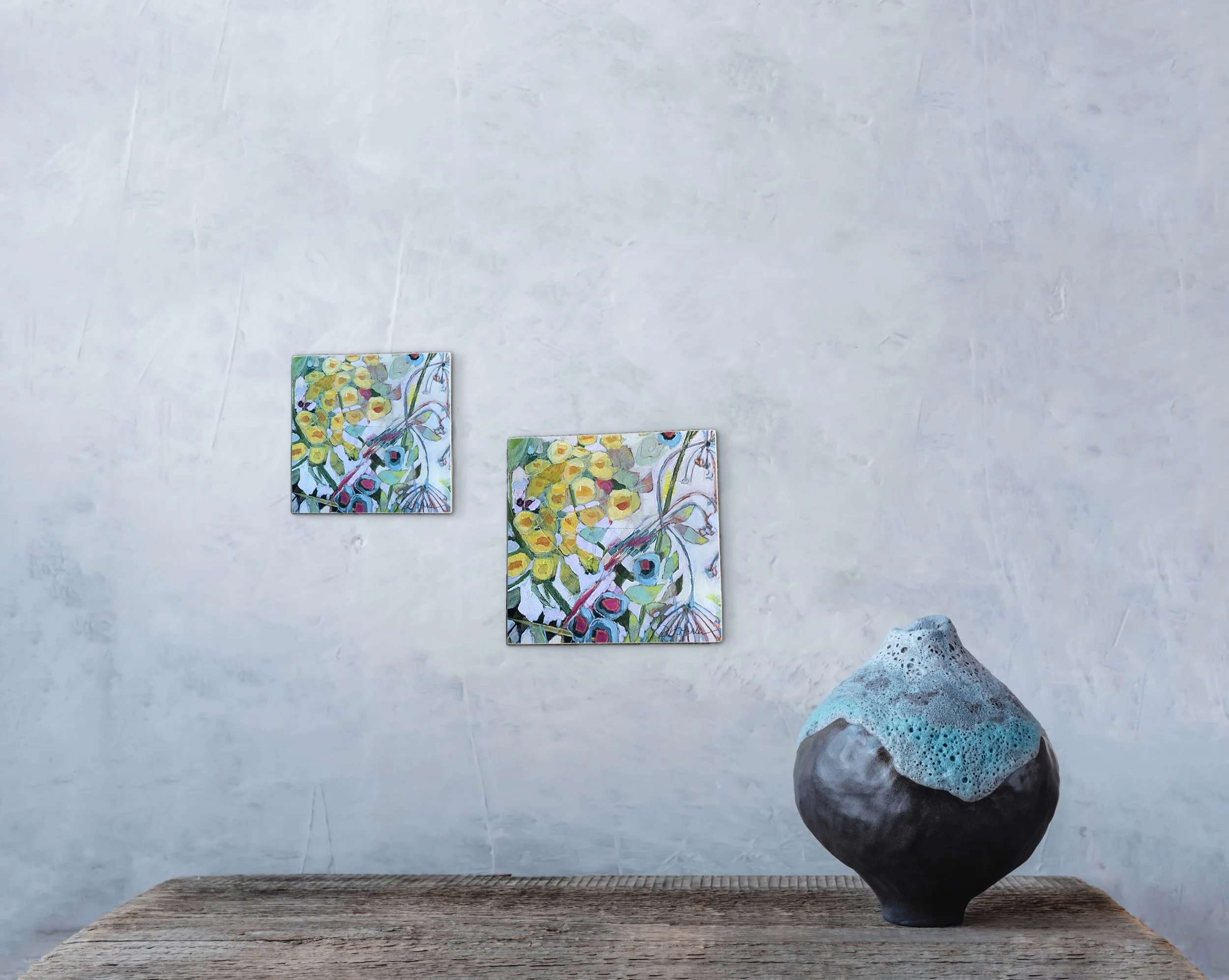 This wood block print is from my original Acrylic painting and was painted as if laying on a forest floor and looking up into the night sky (or heavens) If you look closely you can see the opening to the trees is shaped like a heart. There are stars and birds in the sky. Available as an 6×8 only. CURRENTLY ON SALE FOR YOU!